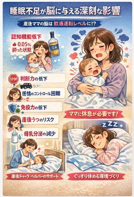 新生児の世話による慢性的な睡眠不足は、単なる「疲れ」以上の問題です。