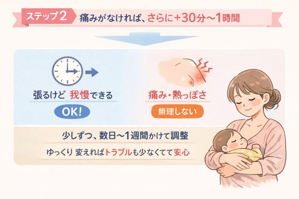 ステップ2:痛みがなければ、さらに+30分〜1時間
